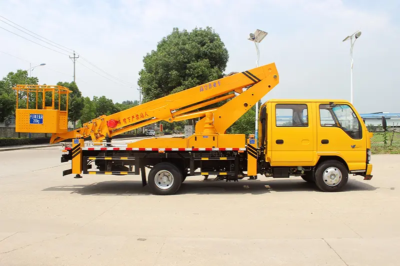 La principal ventaja de este camión de trabajo aéreo con pluma telescópica de 15-21 m es su funcionamiento estable, seguridad y alta eficiencia. A través de las funciones telescópicas, abatibles y giratorias del brazo de trabajo, puede llevar con precisión operadores y herramientas a las posiciones designadas de gran altitud, ampliamente utilizadas en mantenimiento, instalación, limpieza, construcción naval, industria química, reparación de emergencia de energía, poda, reemplazo de farolas y otros escenarios de operación a gran altitud.