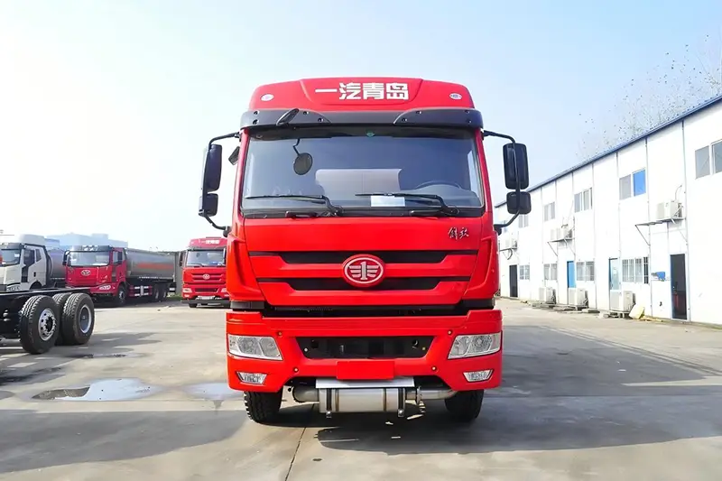 Este camión cisterna de combustible está diseñado específicamente para el transporte de materiales peligrosos (vehículo tipo FL) y cuenta con sistemas de seguridad avanzados que incluyen control de frenado electrónico WABCO EBS3, frenos de disco del eje delantero y dispositivos de protección de emergencia contra rotura de neumáticos. El vehículo cumple con los estándares de emisiones GB17691-2018 National VI, lo que lo hace adecuado para mercados internacionales con estrictas regulaciones ambientales.