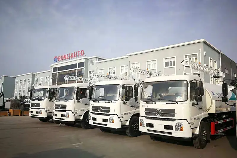 F4: Somos una fábrica en Suizhou desde hace 15 años. Fabricamos una variedad de camiones, tales como: camiones cisterna, camiones de trabajo aéreo, camiones grúa, camiones de basura, grúas de auxilio, camiones contra incendios, camiones frigoríficos, camiones de transporte, semirremolques, etc.
